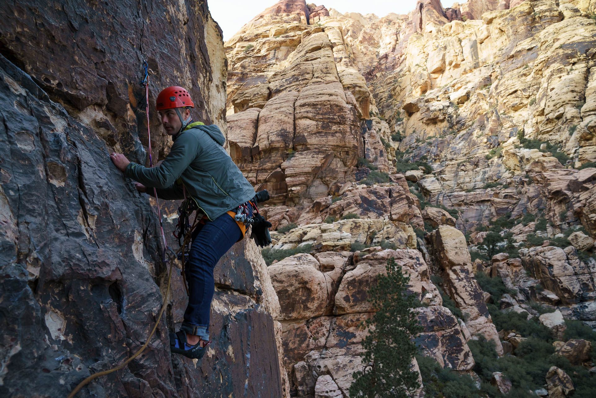 The fourth pitch was a good adventure to finish the route on, and the exit went smooth. I reckon AJ had a pretty baller first day in Red Rocks, especially given our apres-climb hot tub time!