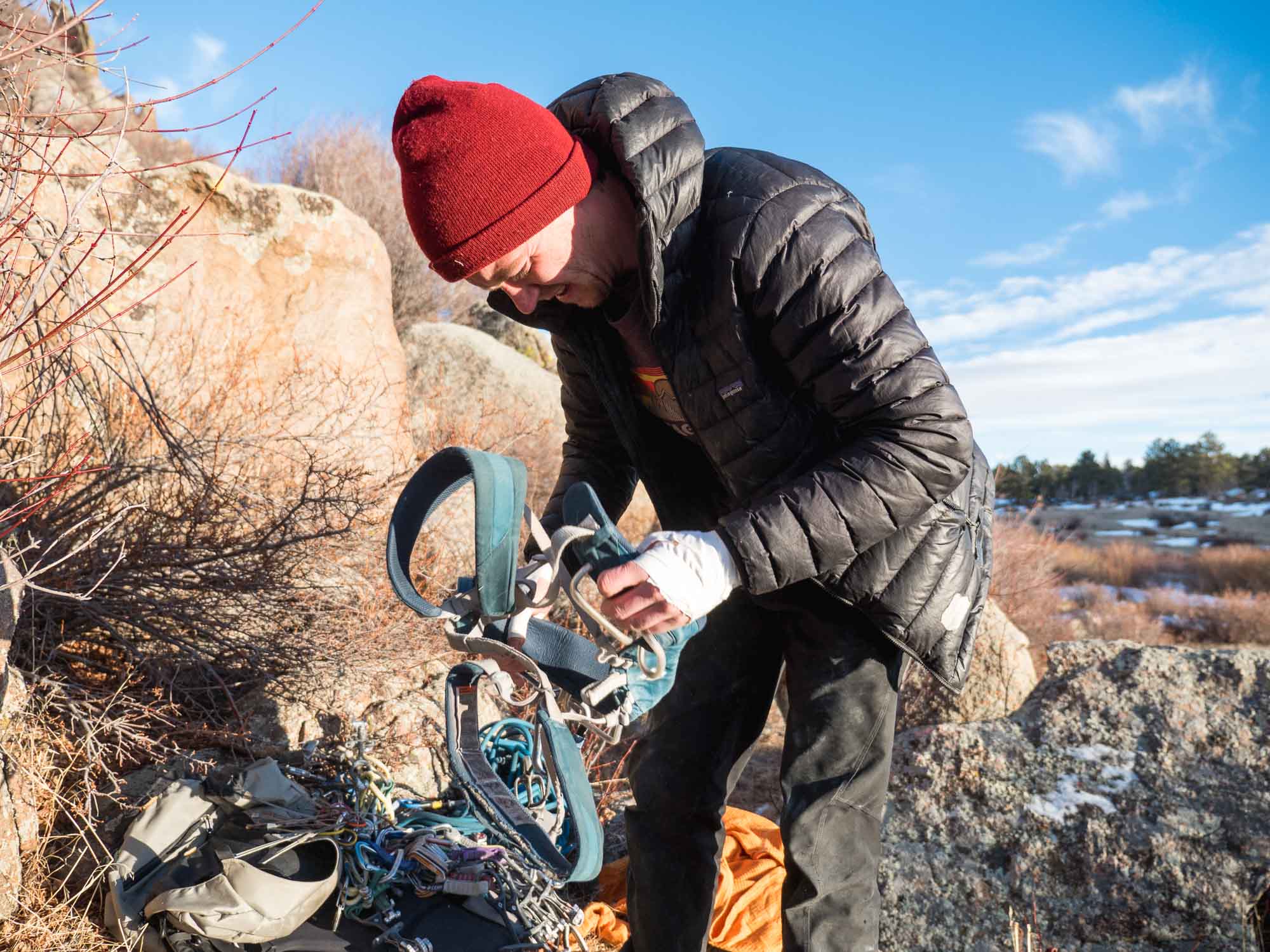 Slim put the route up as the sun raced towards the horizon. As I prepared to follow him I realized that I had been so caught up in taking photos that I'd left my climbing shoes fifty feet below me with my pack, so I followed in my approach shoes.