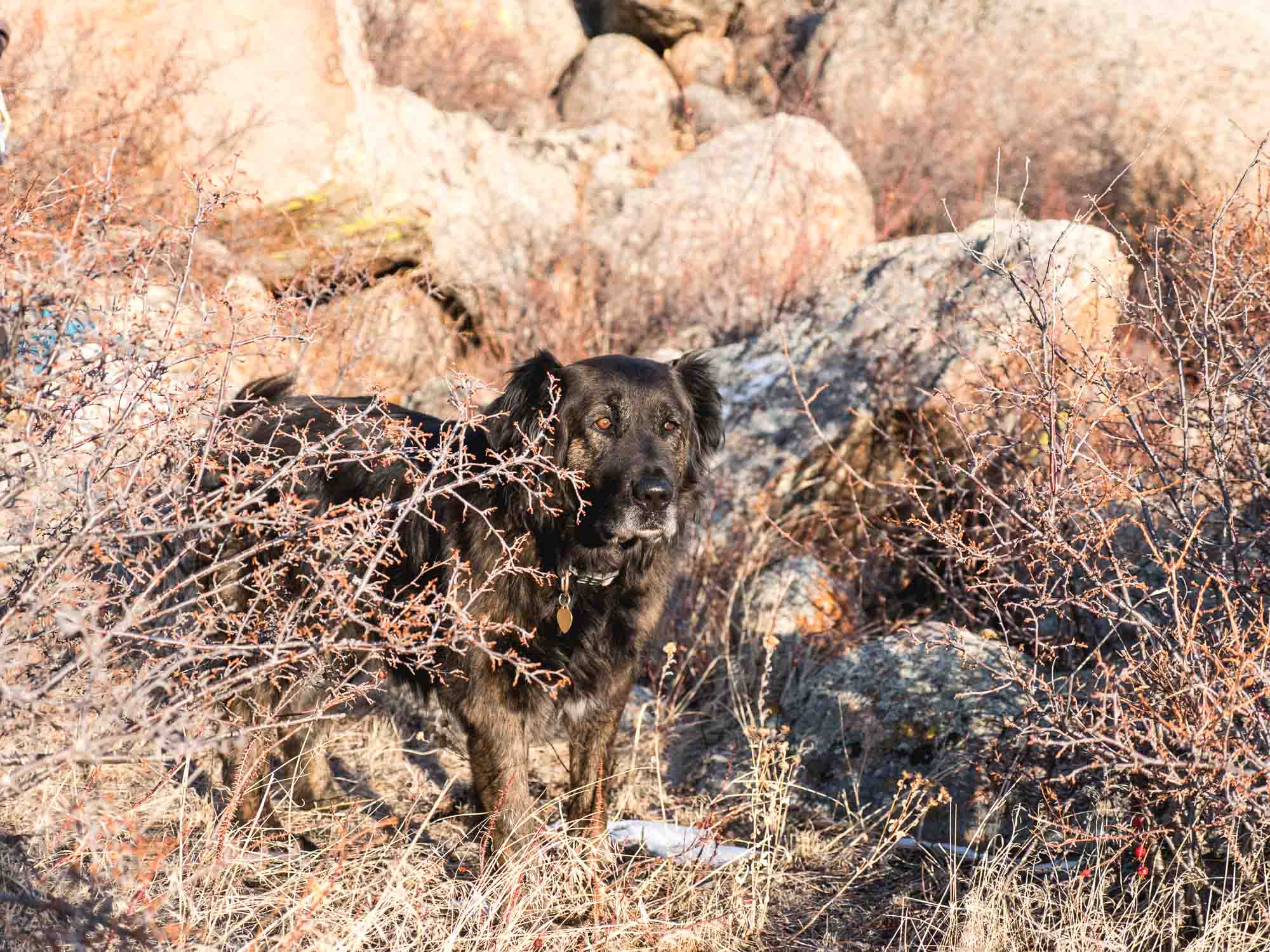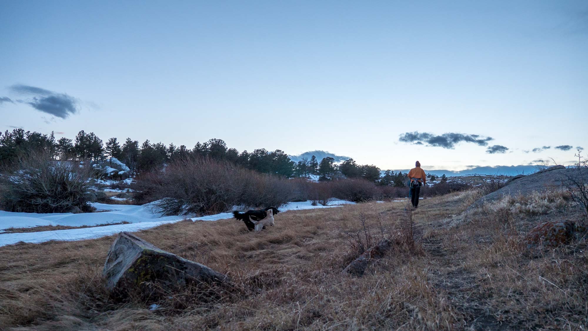 By the time we finished Giggles the sun was down proper. Slim and I scrambled down in the dark. The dogs were waiting for us on the soft ground - they'd clearly been out with Slim when he was doing Jet Stream often, to know where he would reappear after climbing it.