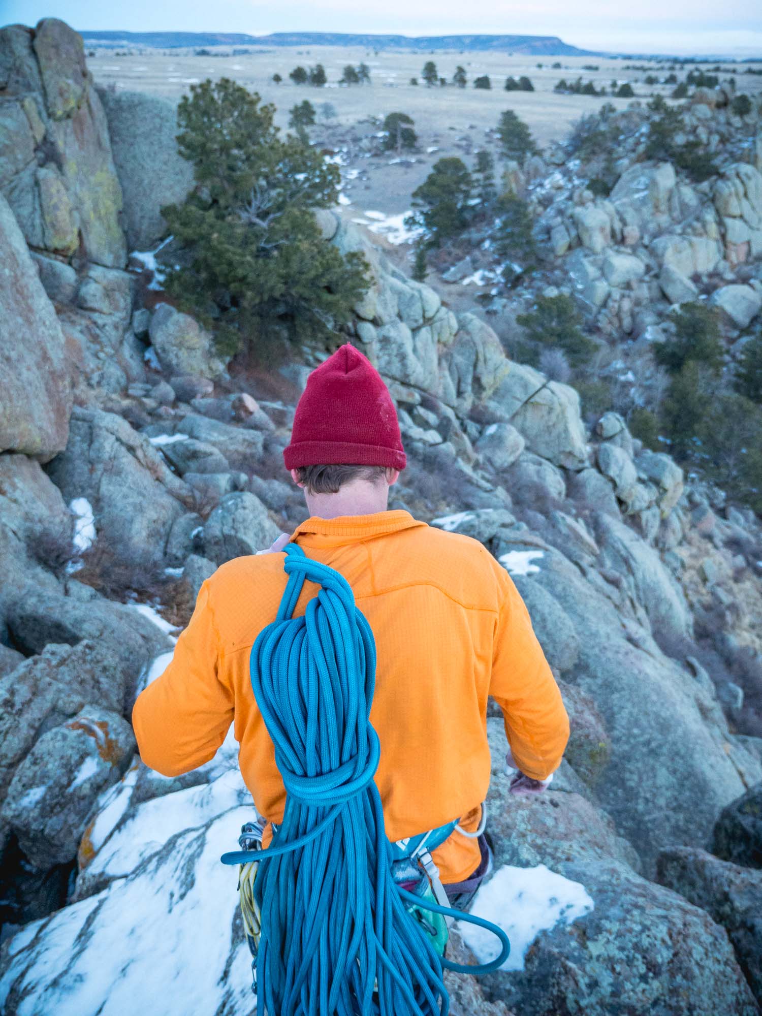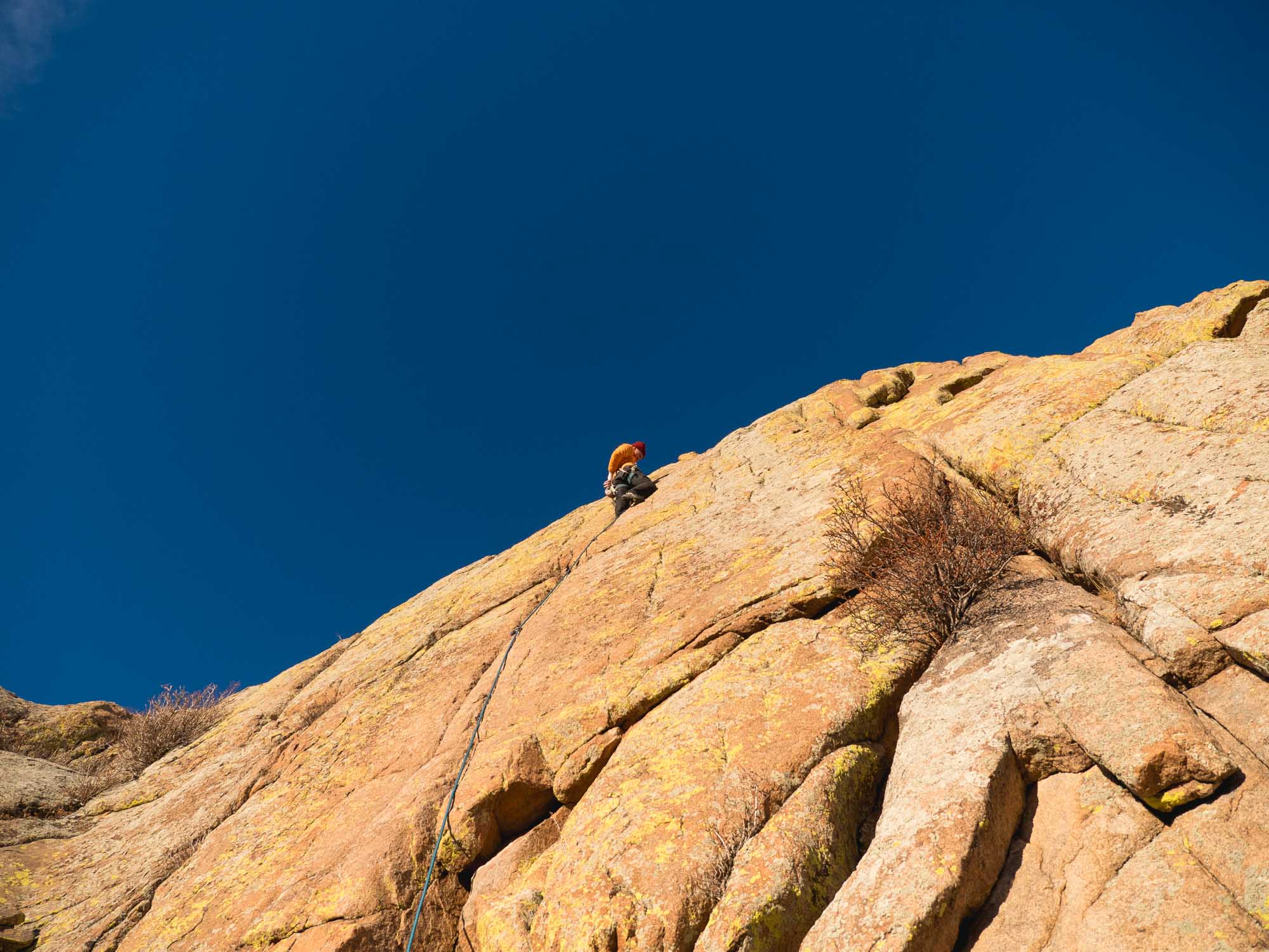 When he topped out, I yelled up "You can just throw the rope down Cameron."