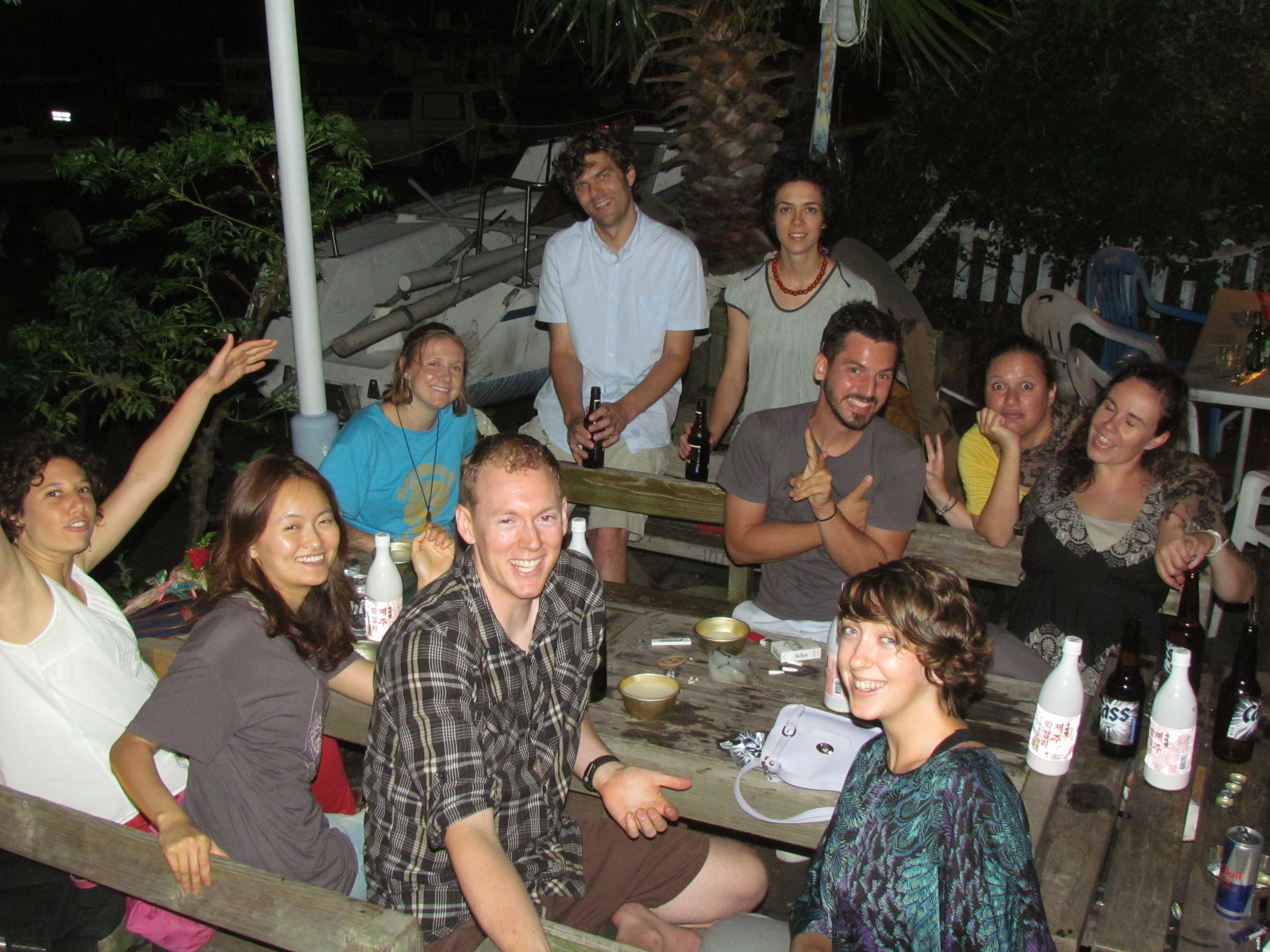 Joy got a phone-call from Kate, Yazmin's roommate, and mentioned that they were hanging out with a couchsurfing. Kate said her co-workers were suppose to be hosting someone that night, and a quick bit of coordination had my meeting with my hosts moved from Dunkin' Donuts to Maybe Cafe, where there was going to be a good gathering and live music to celebrate two years of being open.I finally met up with Dan and Amy, my hosts, along with their co-worker Steve, a great guy from Florida, and by the end of the night, I'll be damned if I hadn't met every foreigner in Seogwipo. The music was good fun, the drinks seemed cheap compared to Japan, it was my first night in Korea and things were good.