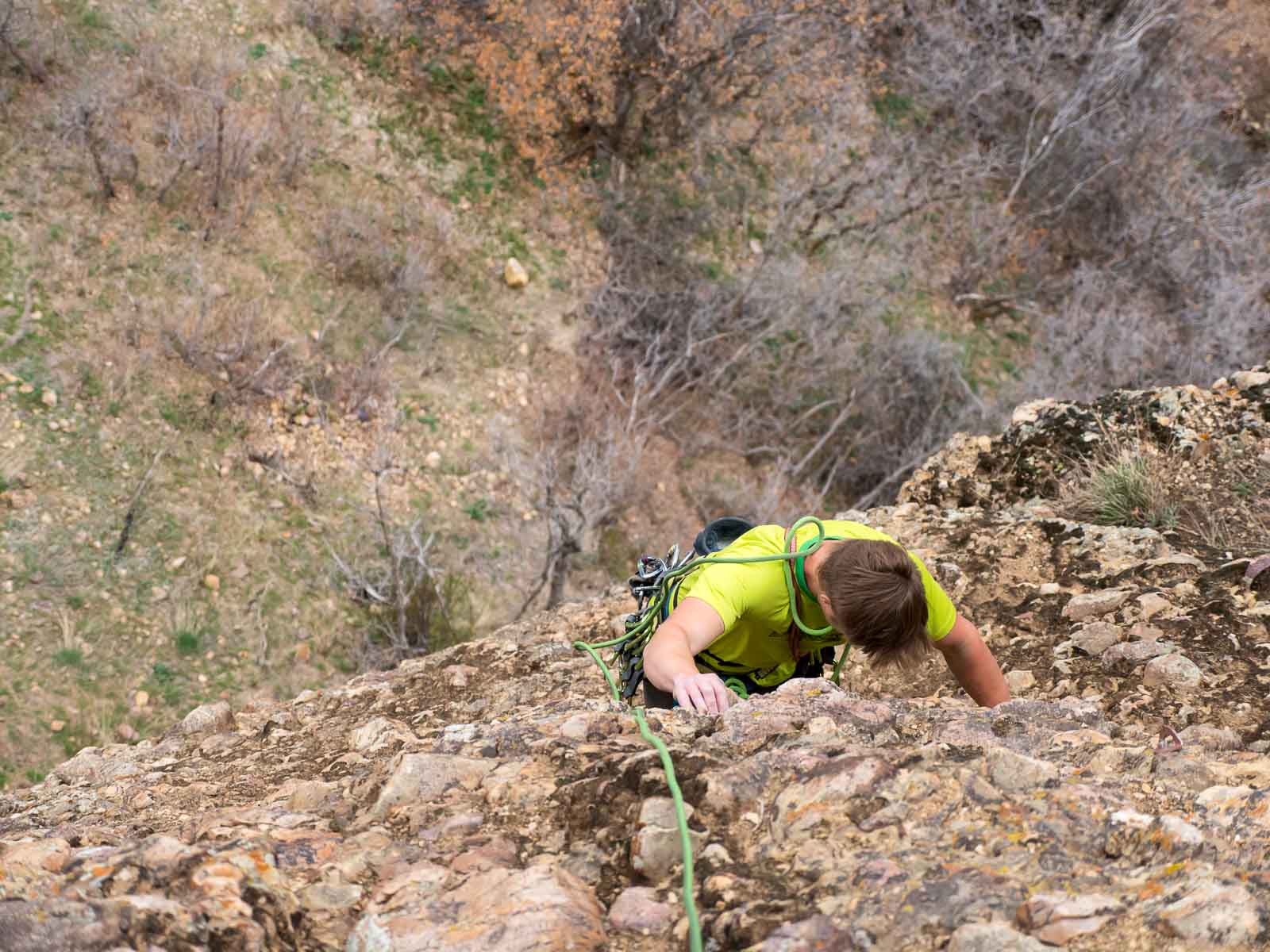 Dave tops out the first pitch while I pay far more attention to photos than to belaying.