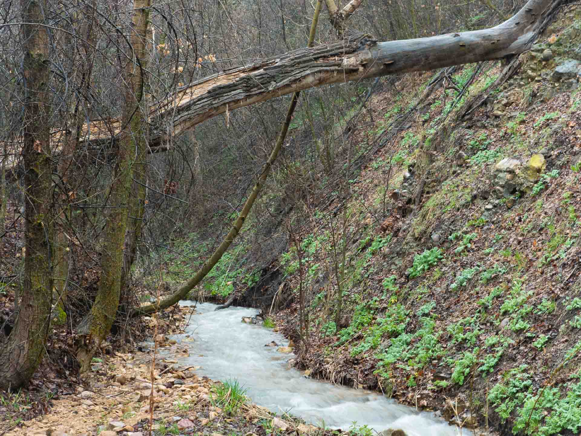 As his foot landed on the opposite side, the in-cut bank gave way. Only his forward momentum saved David from eating much of the shits, I think.