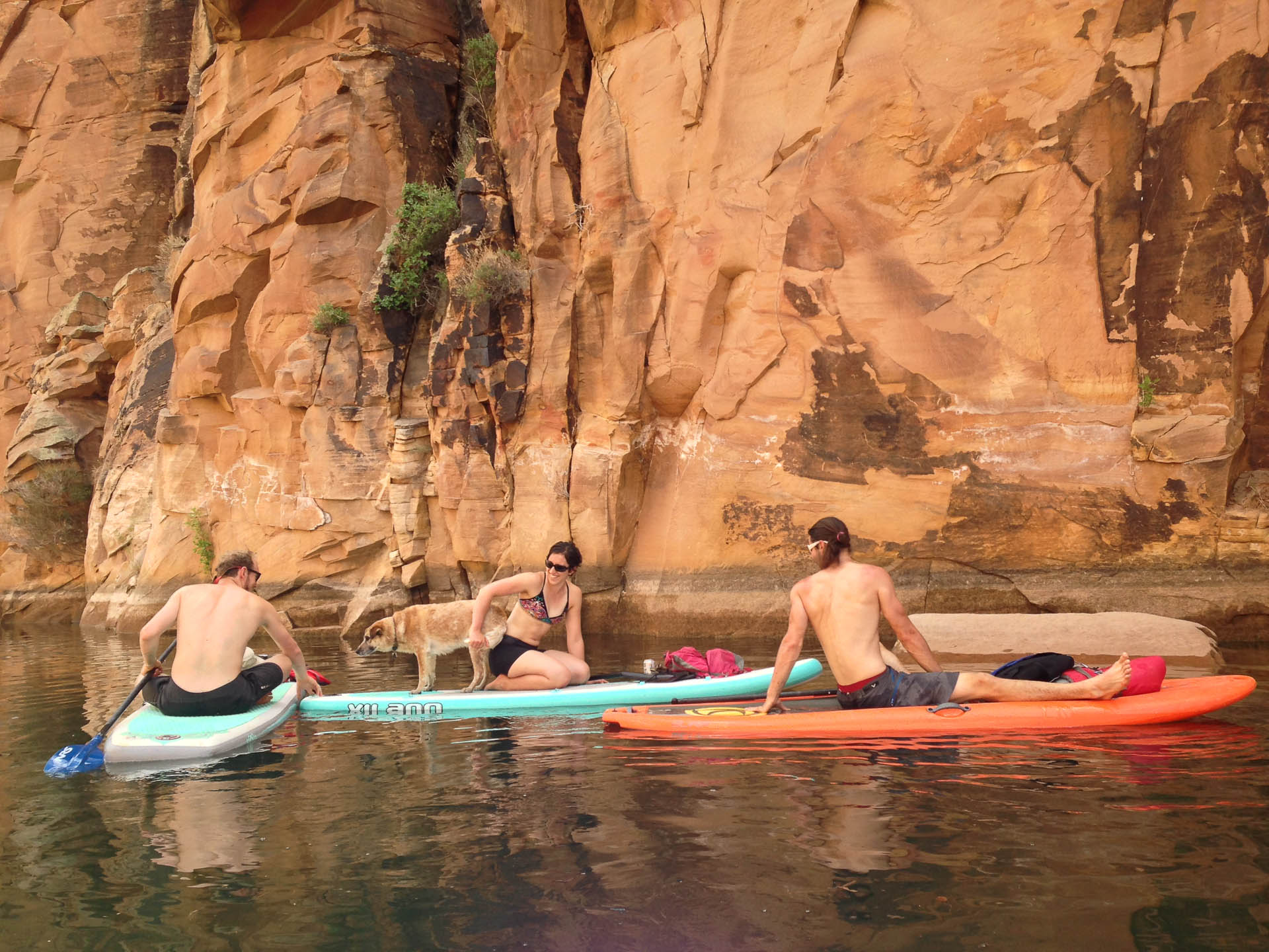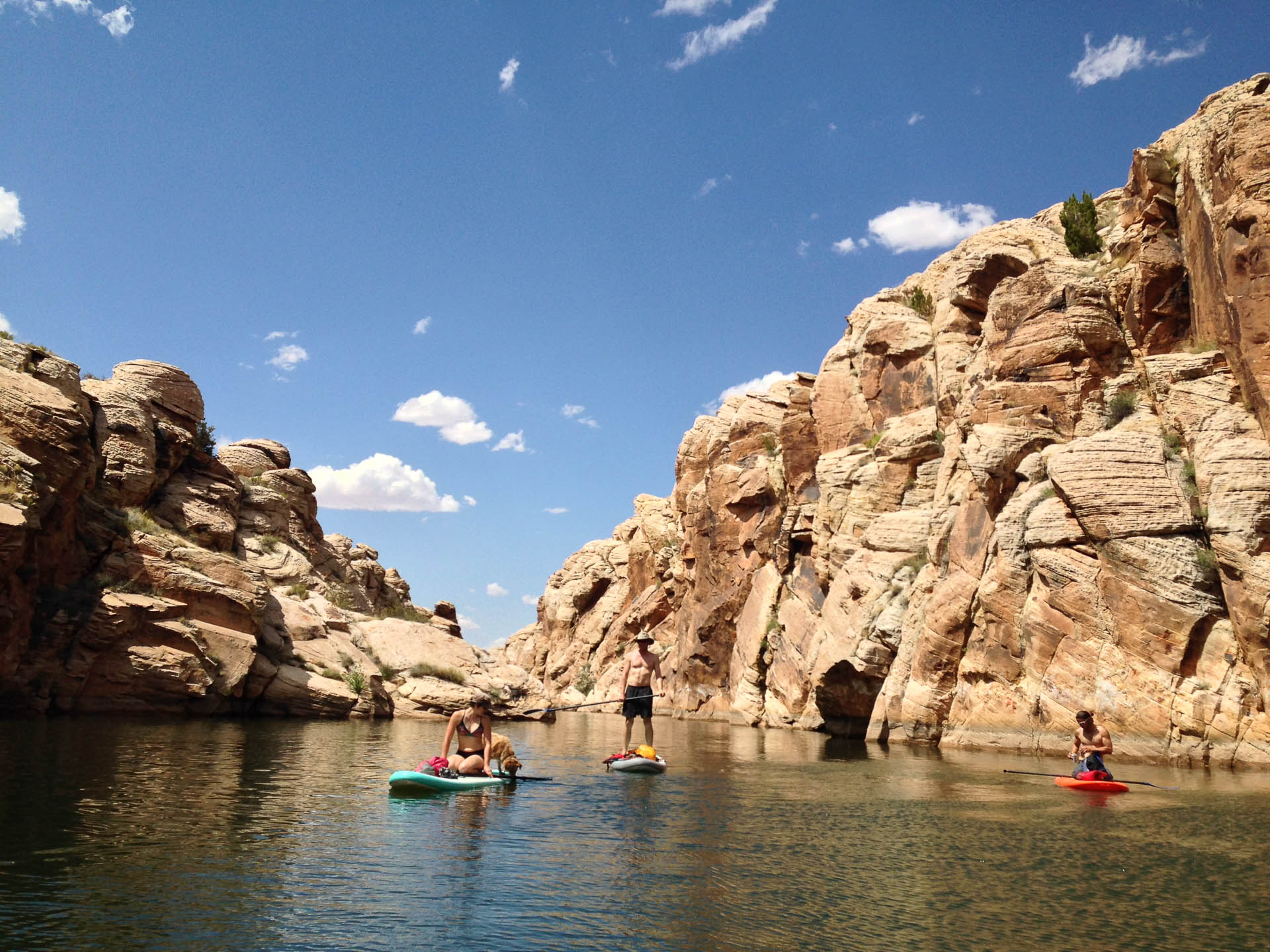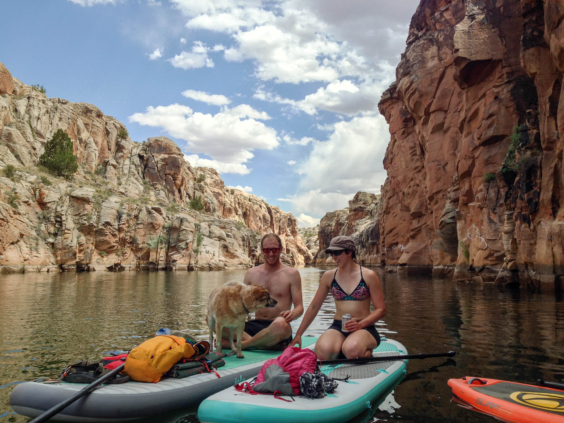 On Memorial Day, OG and my's last full day in Arizona, we borrowed and rented paddleboards enough to float and deep water solo on East Clear Creek. The crew was OG and I, Megs, her friend Joy (whose wedding I'd attend a month later) and the furball June.