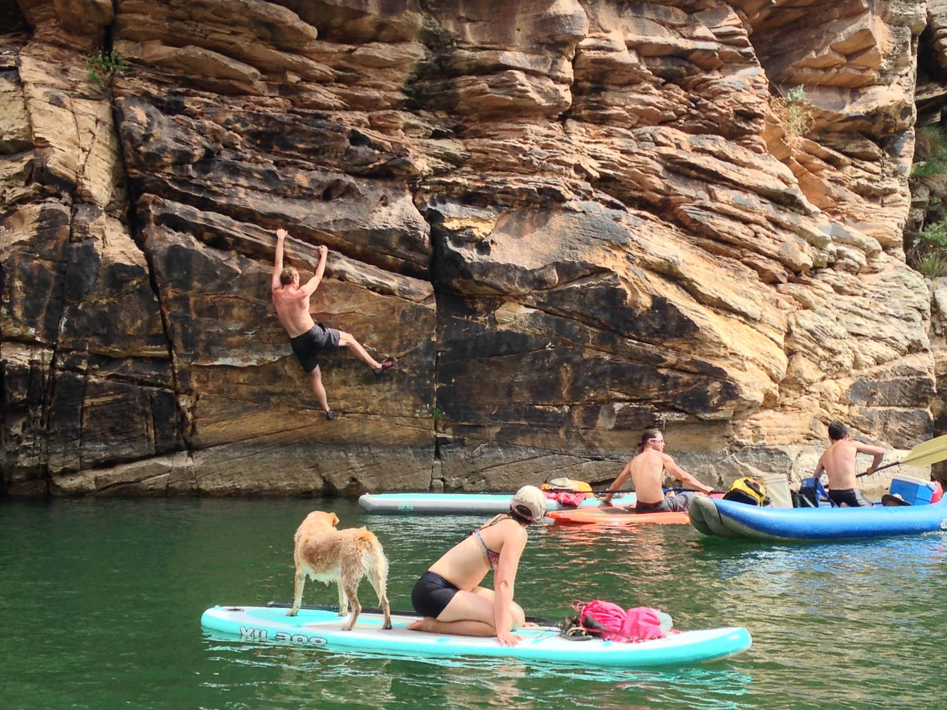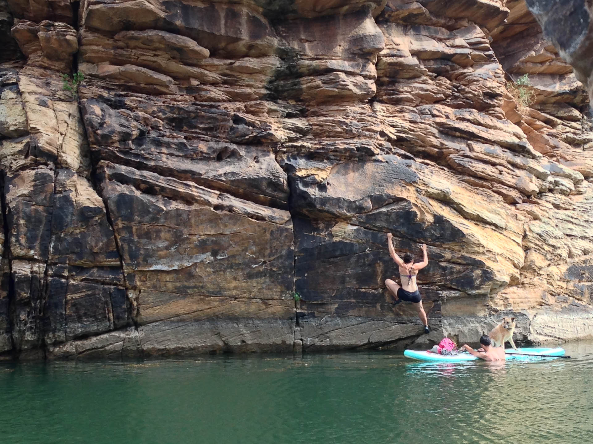 A mile of paddling got us past all the revellers to something a bit more solitary. We grabbed likely looking rocks and tried going up them. One of either fear or difficulty would put us back into the cool blue waters.