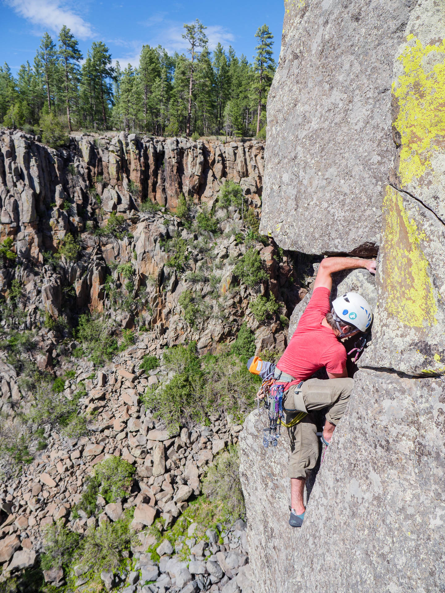 I don't know if we were tired from previous days of climbing, or if the heat got to us, or if it was just too mentally exhausting to be climbing rap-in wide cracks after months of sport climbing, but we didn't set a record for pitch counts that day. Not that that diminishes how much we enjoyed ourselves in any way.
