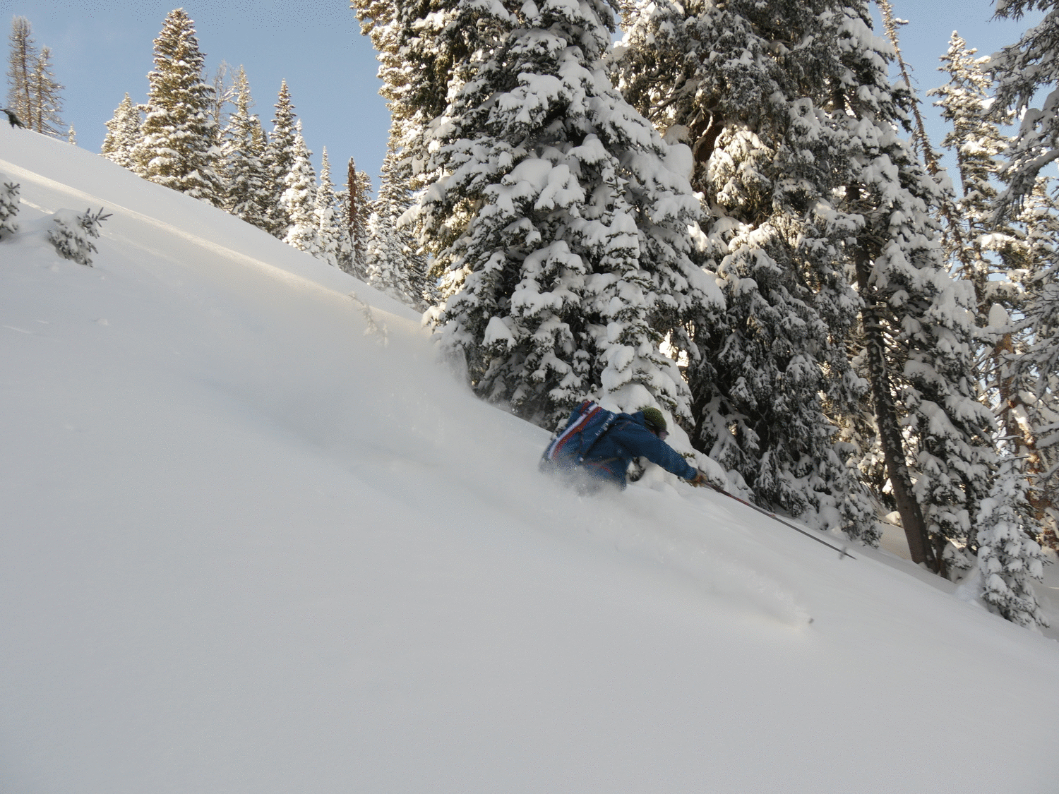The day after Christmas, Chris and I got out to Moose Brush in East Mail Cabin Creek. The powder, it was up to here.