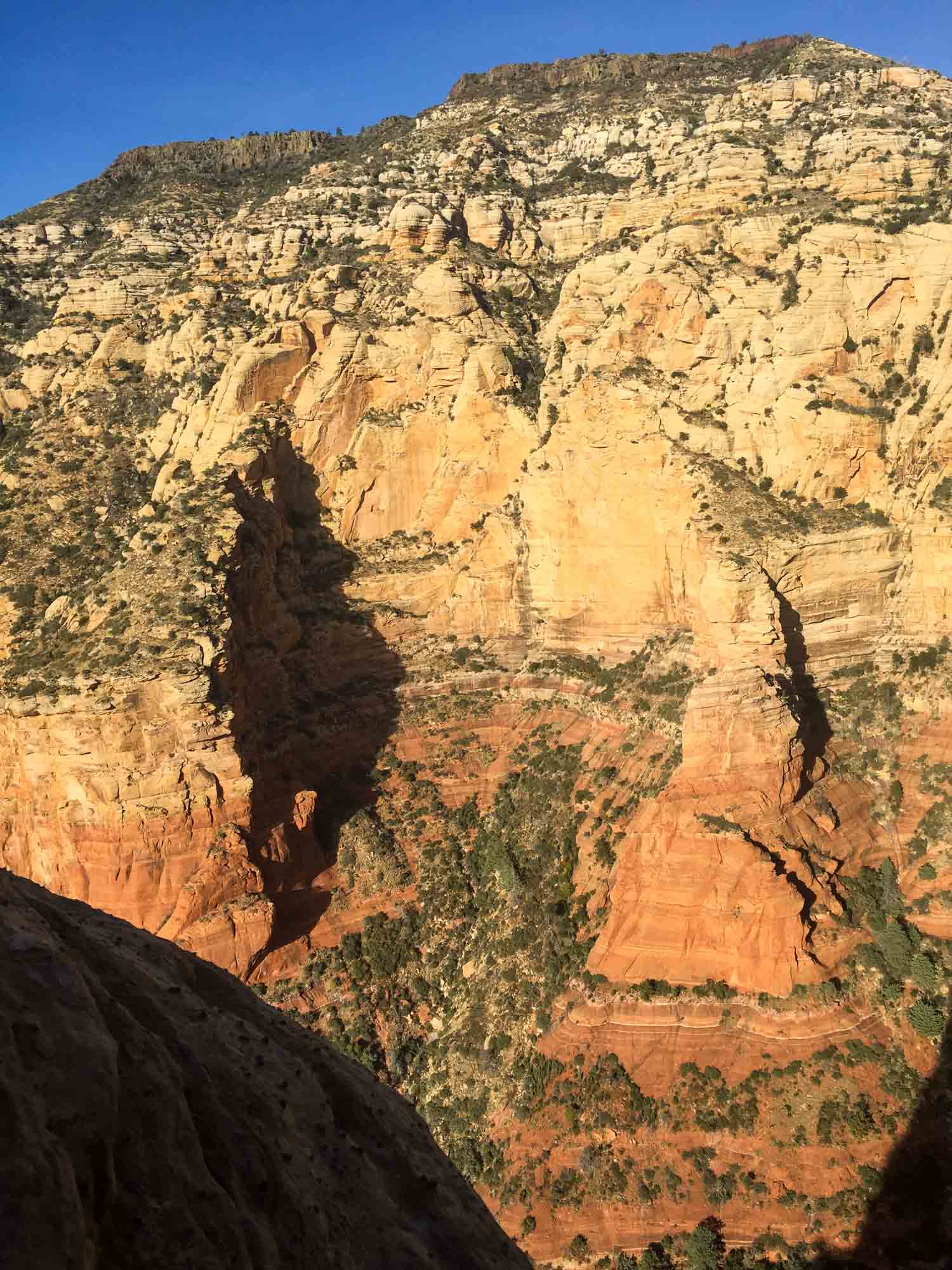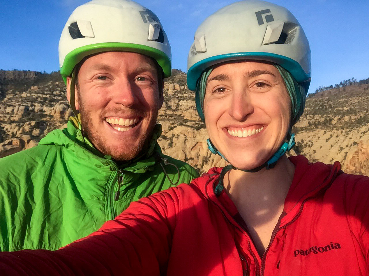 Five ended on a false summit, maybe a thousand feet above flat earth, and for the first time since the morning we got to feel sunshine on our skin. We passed a short respite smiling in the sun and looking out at the expansive range of Sedona's sandstone buttes and towers spreading horizon to horizon before the Megs finished up the climb with a short, winding sixth pitch to the tower's true top.