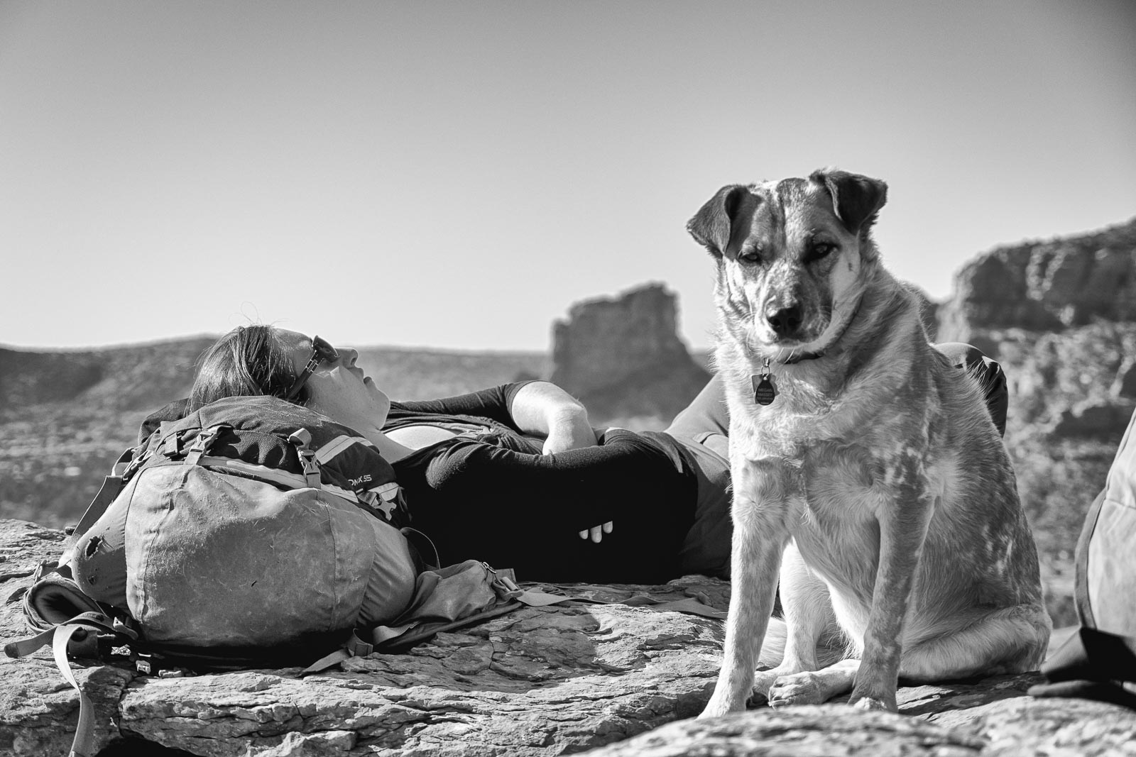A long hike took us to the base of the route, where two young fellas from Phoenix were racking up. Megan, Juniper and I lay down in the sun to wait our turn.