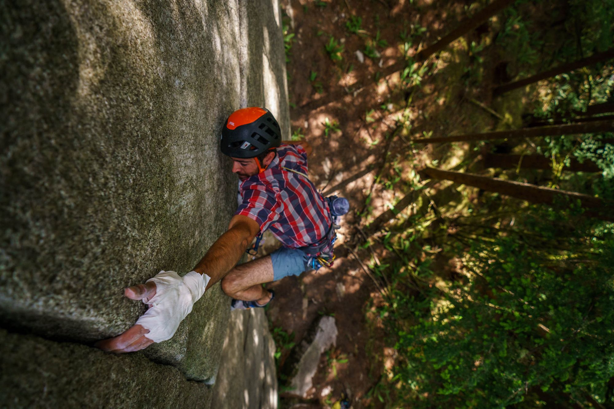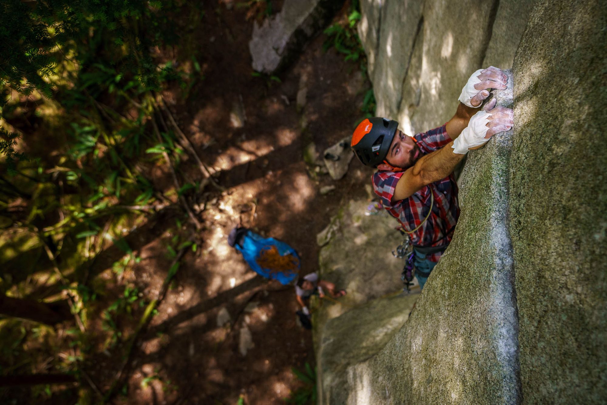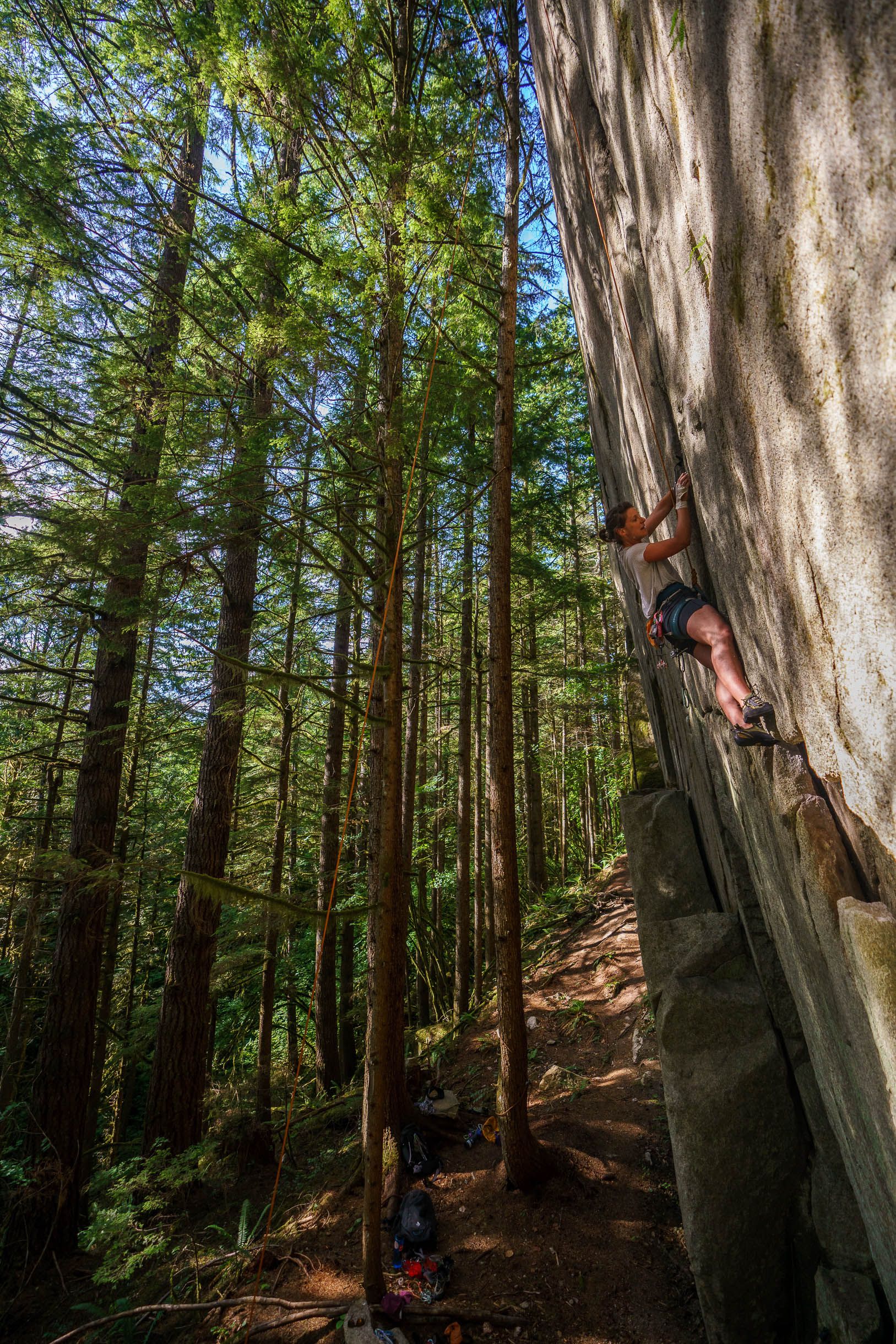 The crag was steep, short, hard trad. Good times in the woods fighting the good fight.