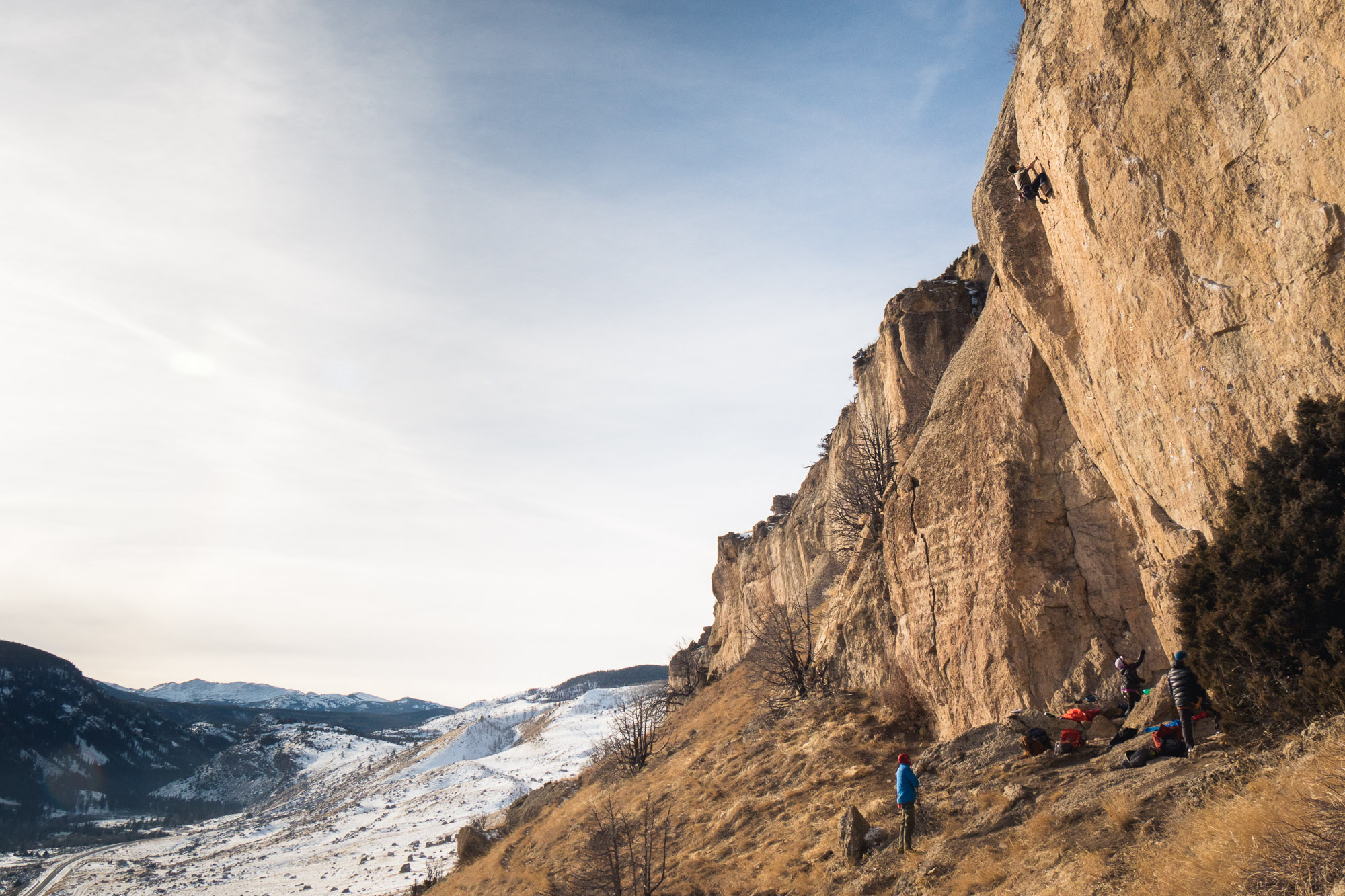11am the next morning, when the air was a balmy 10 degrees (-12C), Viviana, Zach and I went climbing in Sinks.