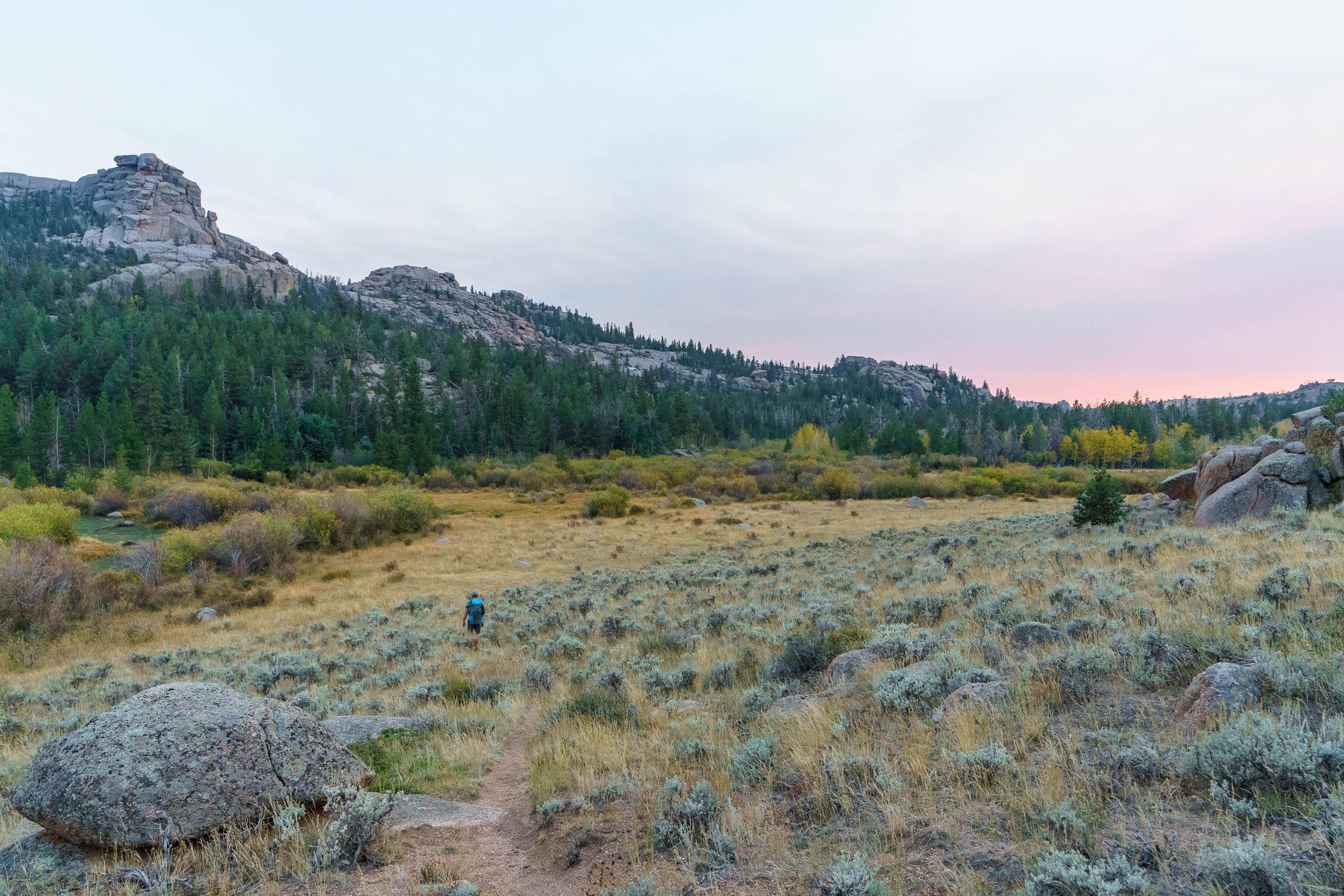 Fall's arrival; fire near the state line; sunset and Sherman granite.