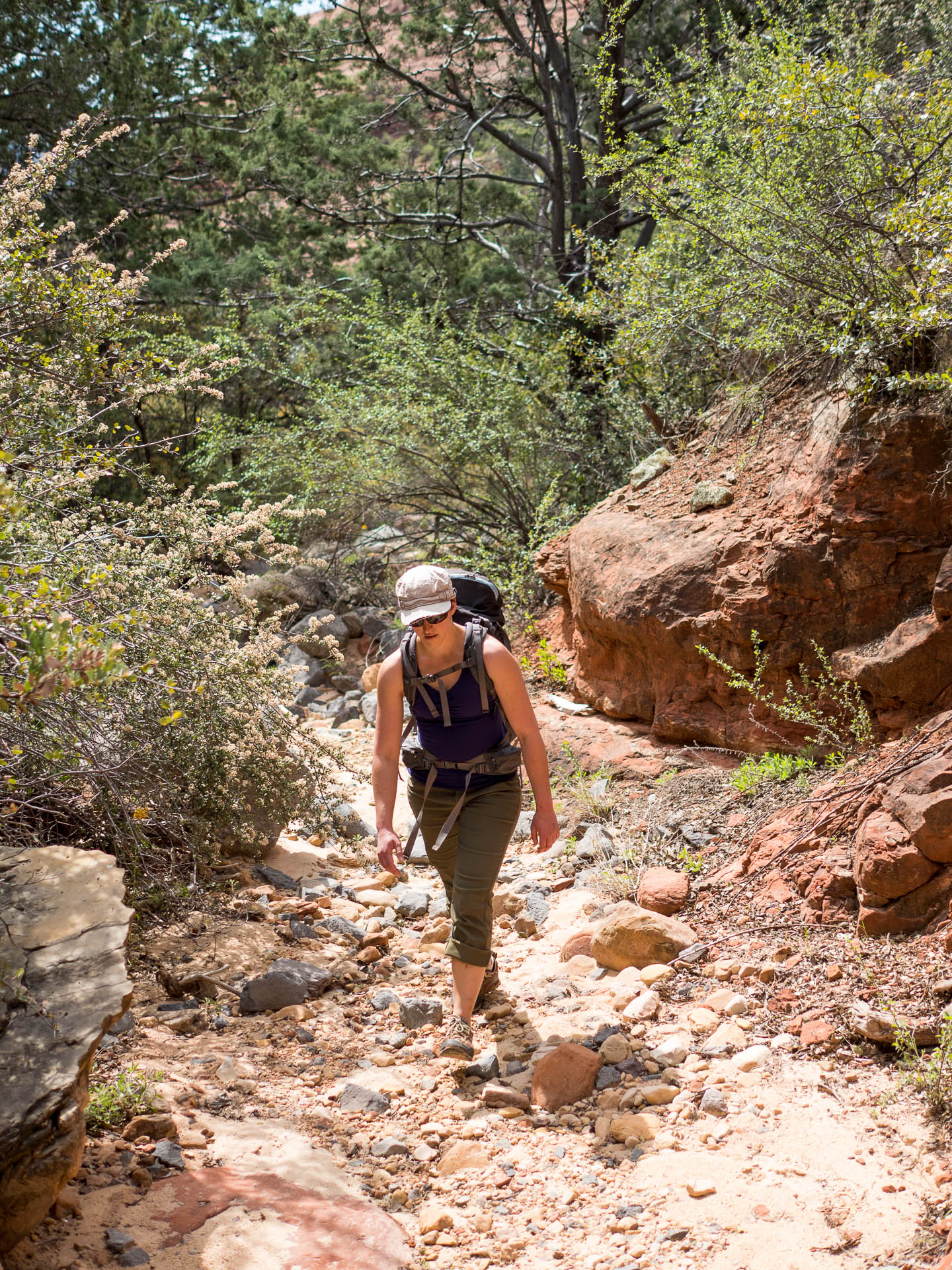 We hiked past the cairn, following the dried out streambed. A few hours later, halfway up the climb, I would think back on Molly's other recollections and advice regarding our chosen route of the day, and I would be the one swearing.